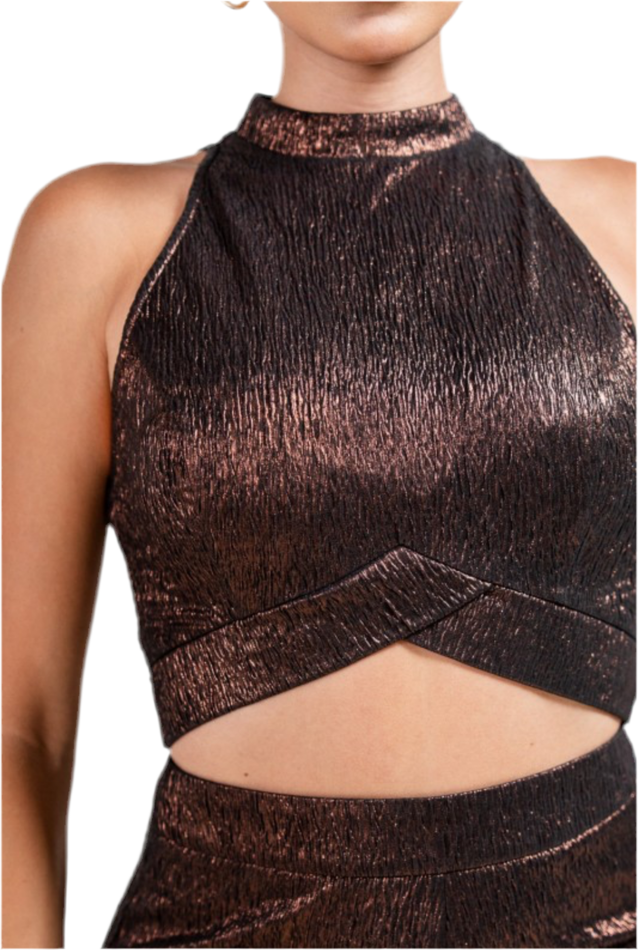MOCKNECK BACK TIE TOP & BACK ZIPPER WIDE LEG PANTS