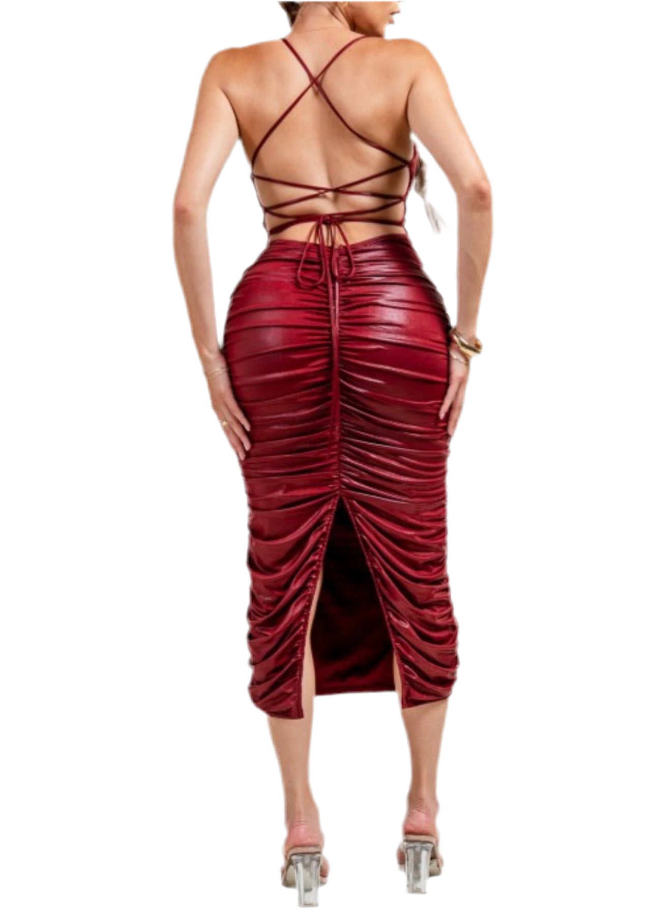 STRAPLESS RUCHED LOW WAIST RUFFLED MINI DRESS